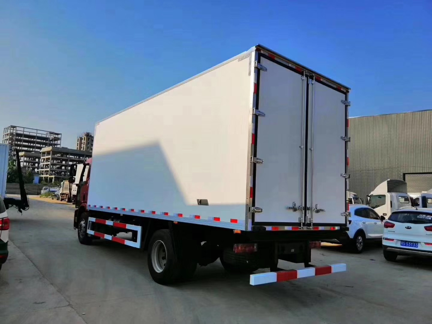 | 整车说明: | 选用底盘5600,5800,7100mm轴距.车厢顶部封闭,不可开启.随底盘选装平顶驾驶室,选装导流罩,选装前围和灯具,选装无遮阳罩,选装液压尾板,尾板收起状态的水平长度295mm,安装单侧门,选装双侧门,可选装功率相当的其他制冷机组,内置制冷机组,安装符合QC/T449-2010规定的行驶温度记录仪.长度尺寸对应关系:9860=1400+5600+2860(7500mm厢长),9860=1400+5800+2660(7500mm厢长),11960=1400+7100+3460(9600mm厢长),侧面防护装置的横杆及纵梁材料为Q235,螺栓连接,后下部防护装置的横梁及纵梁材料为16MnREL,螺栓连接,断面尺寸120×60mm,离地高度为450mm.随底盘前轴选装盘式制动器,选装限速装置,限速89km/h.ABS防抱死制动系统生产厂家,长春瑞立科密汽车电子有限公司,型号:CM4XL.油耗申报值与发动机对应关系:25.6(CA4DK1-22E6),26.3(CA4DK1-18E6),26.5(CA6DH1-24E6).安装具有卫星定位功能的行驶记录仪.驾驶室准乘人数3人对应额定载质量9900kg,驾驶室准乘人数2人对应额定载质量9965kg. | ||