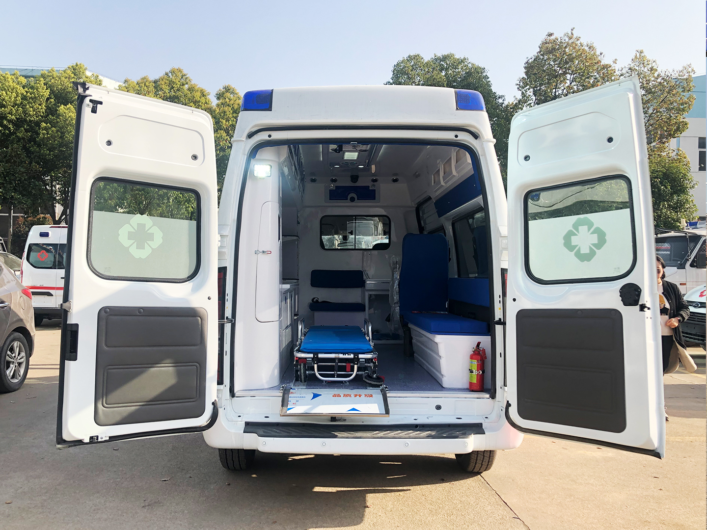 | 整车说明: | 选装高顶,选装机械踏板或电动踏板,选装号牌板支架,选装顶部标志灯结构; ABS系统控制器型号: 6C11 2M110 A*或CC11 2C405 A*,生产厂家:博世汽车部件(苏州)有限公司;车内装置药柜、担架、氧气瓶等专用装置,用于患者急救和运输.选装车辆外观. | ||