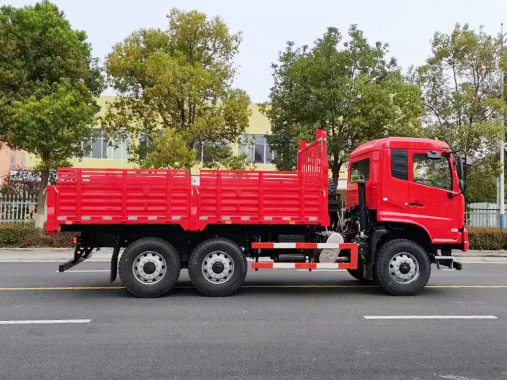 车辆说明:东风天锦六驱越野货车国六排放标准,6x6越野底盘,天锦D530豪华一排半驾驶室带中控锁、电动门窗、原厂空调、中控屏、液晶仪表盘,国六康机210马力六缸6.2升带增压, 机械式军工六挡变速箱,3.5吨杭齿军工分动箱,5吨级东风军车前桥、中桥、后桥,280mm双层大梁、ABS、断气刹、轴距3500+1250mm,整车重量7.5吨,整车尺寸:7900*2550*3070mm,箱体尺寸:4800*2350*600mm,后悬:1680mm,315/80R22.5越野轮胎,带液压轮胎支架,选装前置电动,后置液压5吨绞盘,核定载质量8吨。后 桥为经典耐用的东风军用,杭齿分动箱品质可靠安全,大梁在之前国五越野车基础上升级为280mm加强型大梁,改装越野随车吊再也不用担心大梁承载 问题,东风天锦D530一排半豪华驾驶室可坐三人,驾驶室隔音效果好,制冷制热设备完善,新款仪表台更加动感,尽享驾乘乐趣,轮胎为大花纹越野轮 胎通过能力强。用于五路地域的货物运输车,适用于沙漠、浮土、戈壁、硕士、泥泞、崎岖、山地、冰雪等路况,可作为石油物探、地质勘探、大地测 量、文物考古、草原检测、畜牧防疫、森林消防、边境巡逻、沙漠旅行等特殊环境用车,它突出的优点是:载重量大,越野本领强,通过性能高。以六轮全驱动的中型越野汽车来说,它可以载重7吨,最高车速为每小时90公里,能爬60度的坡。可在路面不良的道路或原野、山区、坡地、沼泽、沙漠和冰雪 等无路面地区行驶。越野载货汽车多用于运输、作业、勘测、采矿、工程施工、林业运输等方面。