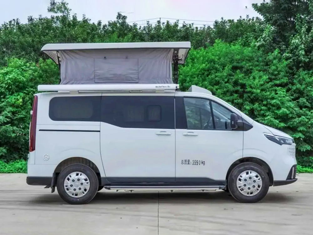 全新大通V70底盘的基础上改装而来的,整体造型不仅时尚前卫,而且功能性和配置都满足了大多数露营爱好者的使用需求。车内的配置虽然不多,但厂家支持更多个性化定制,也为消费者带来了更多的选择性。水电配置方面,电力标配200ah磷酸铁锂电池电池、3000w逆变器,水箱标配100L清水箱和55L灰水箱,基本满足了户外露营的使用需求。