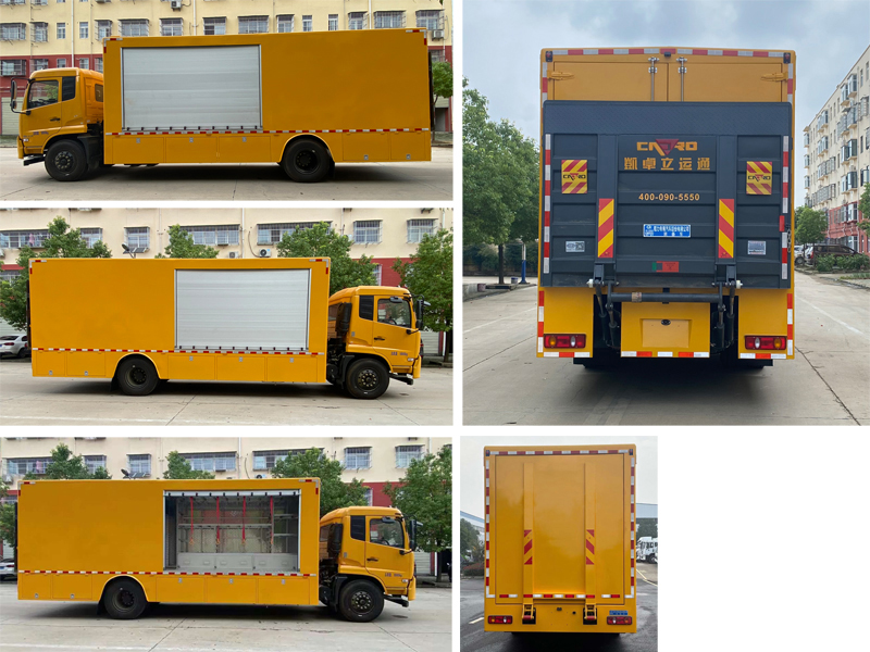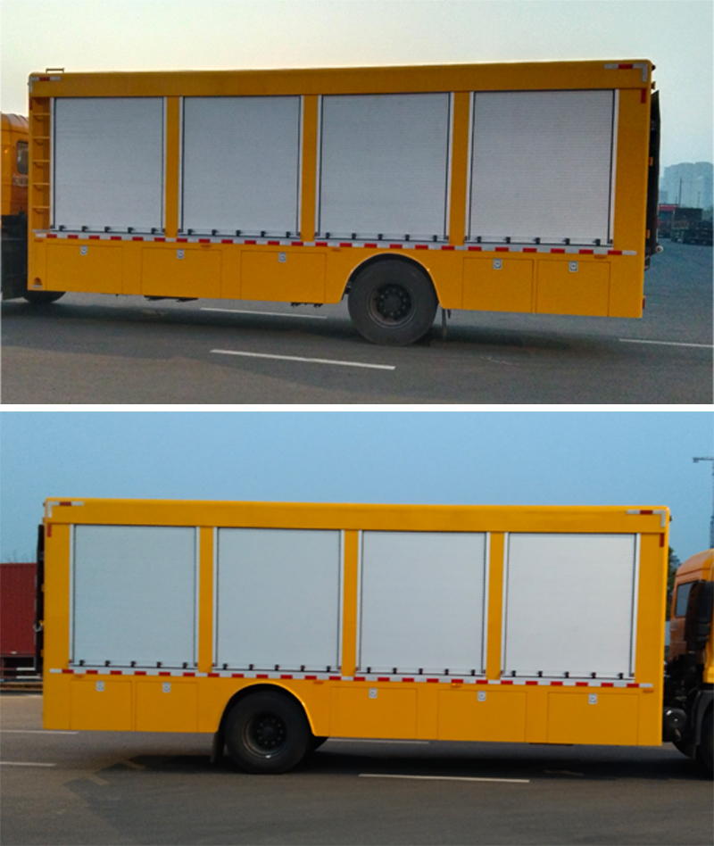 | 整车说明: | 厢体顶部封闭,不可开启;主要用于装载轨道交通救援复轨设备、救援扶正设备、救援破拆设备、照明设备及其它救援辅助设备,作用于轨道交通列车的脱轨救援、车辆扶正救援等其它事故的应急救援;整车外形长/前悬/轴距/后悬对应关系(mm):7380/1400(1430,1455)/3800/2180(2150,2125),7680/1400(1430,1455)/3800/2480(2450,2425),7530/1400(1430,1455)/3950/2180(2150,2125),7830/1400(1430,1455)/3950/2480(2450,2425),7780/1400(1430,1455)/4200/2180(2150,2125),8080/1400(1430,1455)/4200/2480(2450,2425),8080/1400(1430,1455)/4500/2180(2150,2125),8380/1400(1430,1455)/4500/2480(2450,2425),8280/1400(1430,1455)/4700/2180(2150,2125),8580/1400(1430,1455)/4700/2480(2450,2425),8580/1400(1430,1455)/5000/2180(2150,2125),8880/1400(1430,1455)/5000/2480(2450,2425),9180/1400(1430)/5000/2780(2750),9480/1400(1430)/5000/3080(3050),9980/1400(1430)/5800/2780(2750),10280/1400(1430)/5800/3080(3050);侧后防护由车身结构代替,后防护离地高500mm;尾板、上下坡道(或类似装置)收起状态的水平长度(mm):280,尾板质量为540kg;安装有具有卫星定位功能的行驶记录仪,选装ETC车载装置;发动机/油耗值(L/100km)对应关系为:D4.5NS6B190/24.4,D6.7NS6B230/23.7,DDi50E190-60/23.9,B6.2NS6B210/23.8,B6.2NS6B230/23.8,DDi50E220-60/24.3;ABS型号/生产厂家:3631010-C2000/东科克诺尔商用车制动系统(十堰)有限公司,ABS 8/东科克诺尔商用车制动系统(十堰)有限公司, 4460046450/威伯科汽车控制系统(中国)有限公司,J ABS/焦作博瑞克控制技术有限公司;选装不同外形样式. | ||