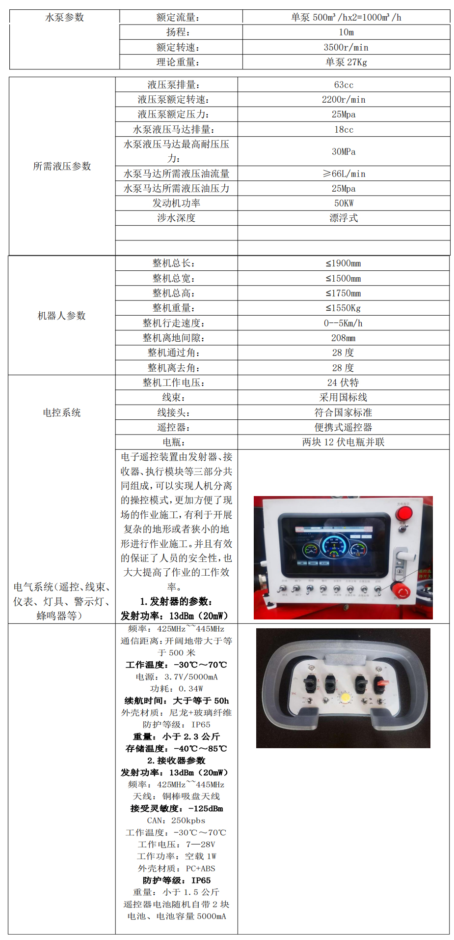 准可靠。遥控器的有效距离为 500 米。遥控器采用人工智能学制作,方便操控者节省体力。并且在遥控器上还有急停开关,在关键的时候可以一键急停。