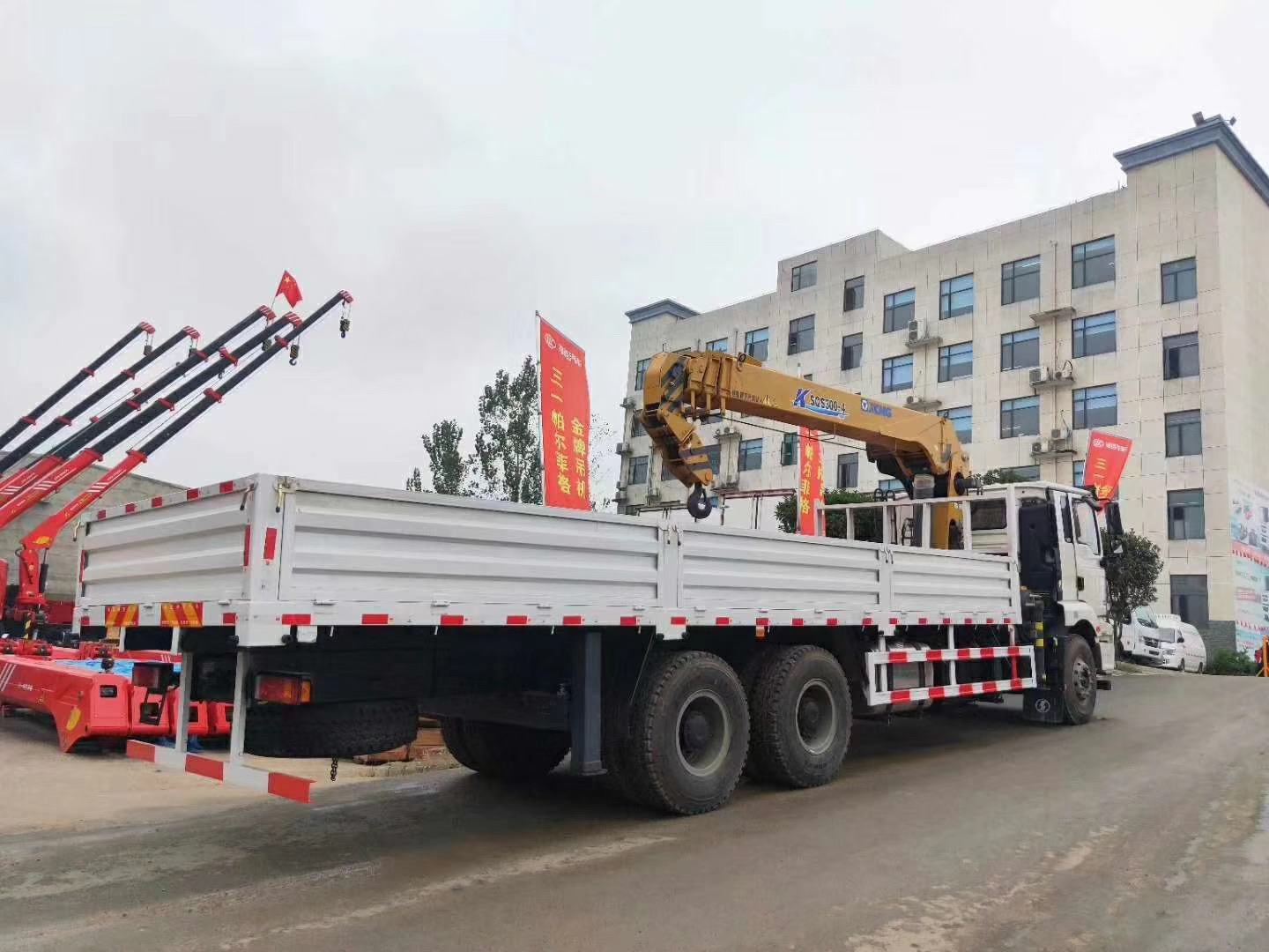 | 整车说明: | 该车的专用装置为货箱和吊机,用于货物的起吊和托运.吊机型号/最大起升载荷(kg)/吊机重量(kg)/整备质量(kg)分别为:SPS25000/10000/4700/17200,SQS10.0SA4/10000/4300/16800;侧后防护采用Q235材质焊接连接,后部防护断面尺寸为50×120mm,后部防护离地高度(mm):480mm.ABS系统生产厂家及型号分别为:西安正昌电子股份有限公司(ZQFB-V).;该车安装带有卫星定位功能的行驶记录仪.选用发动机WP7.270E61、WP7.300E61、WP8.320E61、WP8.350E61、WP9H350E62.油耗值分别对应为32.37(L/100km),32.37(L/100km),32.18(L/100km),32.18(L/100km),32.41(L/100km).选装箱板结构,选装随车起重机中位座椅和高位座椅,选装随车起重机后支腿,选装随车起重机不带座椅,选装不带随车起重机后支腿. | ||