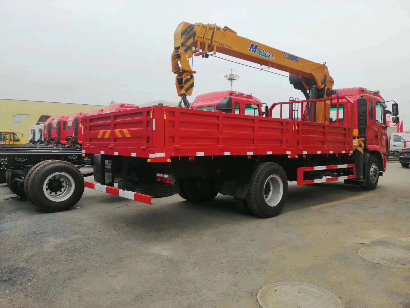 | 整车说明: | 1.侧面及后下部防护装置连接方式为螺栓连接,侧防护材料材质为Q235A,后下防护材料材质为:QSTE650,后防护离地高度为435mm,断面尺寸长×宽为:120mm×70mm;2.安装带卫星定位功能的行驶记录仪;3.发动机YCS04 200-68油耗申报值(L/100km)为23.9;4.ABS控制器型号/生产企业:VIE ABS-II/浙江万安科技股份有限公司,CM4XL-4S/4M/广州瑞立科密汽车电子股份有限公司;5.选装多种吊机,选装不带后支腿,选装折臂式吊机,选装随车起重机高位座椅和中位座椅(吊机操作),吊机型号/最大起升载荷(kg)/吊机重量(kg)/额定载质量(kg)/整备质量(kg)分别为:直臂吊(SQS157、SPS16000、 QYS-6.3、URV634、ST170)/6300/3500/7505(7570)/10300,(SQS200、SPS20000、URV804、ST220)/8000/4000/6605(6670)/11200, 折臂吊(SPK15500)/6300/3500/7505(7570)/10300,(SPK23500)/8000/4000/6605(6670)/11200,不同吊机整备质量变化在3%范围内. | ||