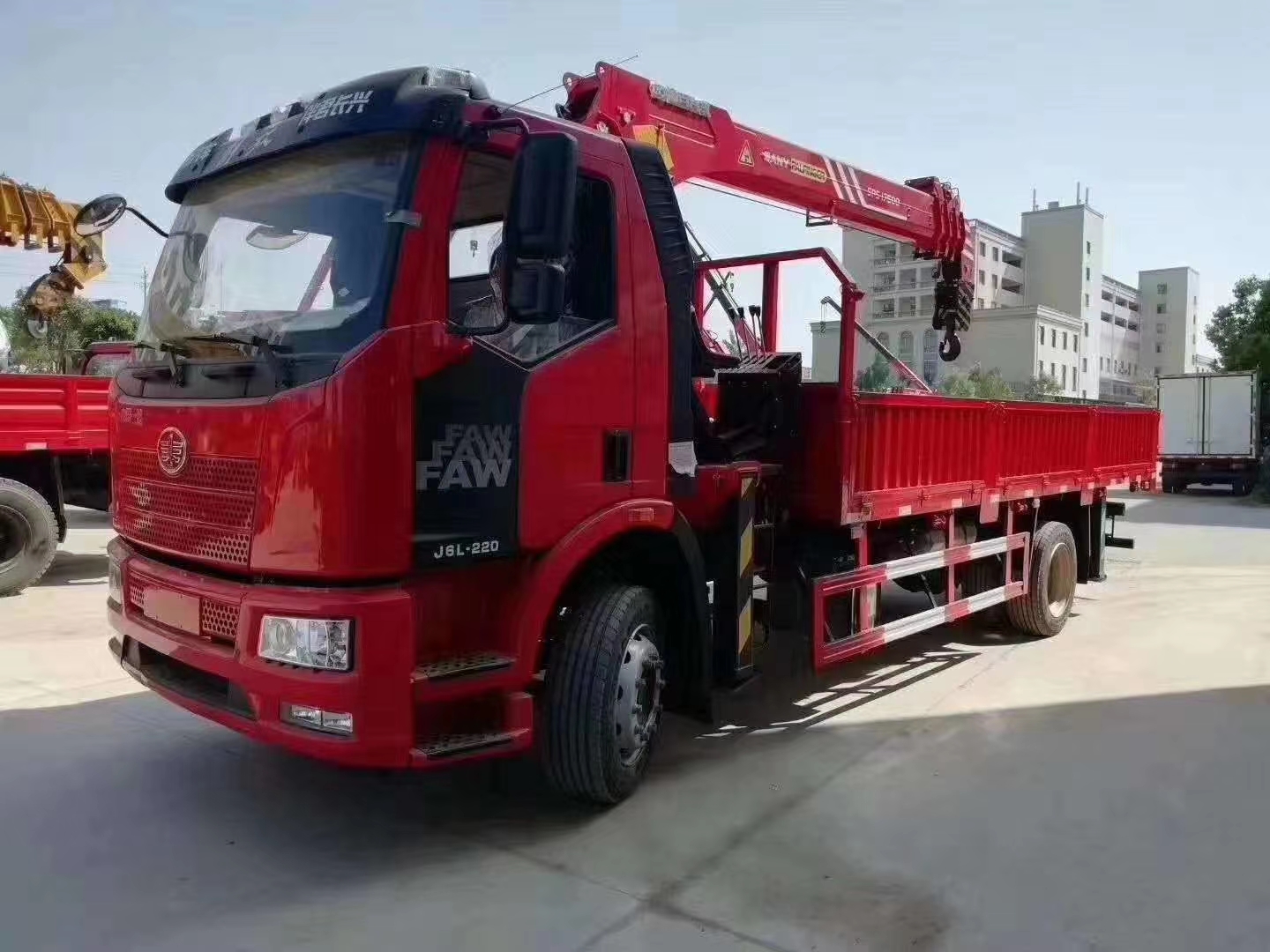 | 整车说明: | 该车的专用装置为货箱和吊机,主要用于各种物品吊装和运输.直臂式吊机型号/最大起升载荷(kg)/吊机重量(kg)/整备质量(kg)分别为:SQ6.3A4/6300/3100/11500;SQ8.0A4/8000/3600/12000,SPS17500/8000/3600/12000;整车长/轴距/后悬对应关系:8350/4500/2450,8680/4700/2580,9000/5000/2600,9000/5300/2300;侧后防护采用Q235材质焊接连接,后部防护断面尺寸为50×120mm,后部防护离地高度(mm):480.ABS系统生产厂家:长春瑞立科密汽车电子有限公司,型号:CM4XL.该车安装带有卫星定位功能的行驶记录仪。选用发动机发动机CA4DK1-22E6和CA4DK1-18E6 油耗值都为25.6L/100km.选装折臂式吊机型号/最大起升载荷(kg)/吊机重量(kg)/整备质量(kg)分别为:ZSQ8.0A4/8000/3600/12000;装备限速装置,限速89km/h. | ||