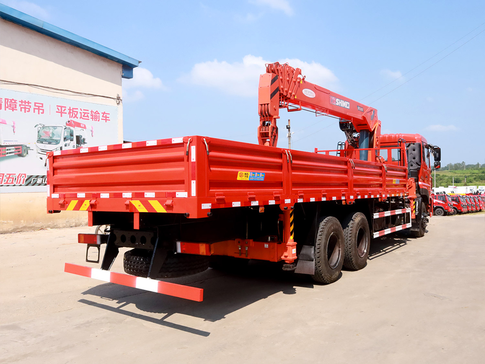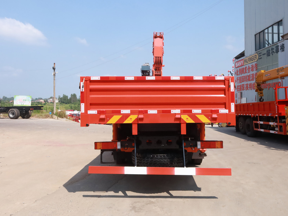 整车说明: 该车的专用装置为货箱和吊机,用于货物的起吊和托运.直臂式吊机型号/最大起升载荷(kg)/吊机重量(kg)分别为:SQS250/10000/5100;侧后防护采用Q235材质焊接连接,后部防护断面尺寸为50×120mm,后部防护离地高度(mm):470.ABS型号/生产厂家:3631010-C2000/东科克诺尔商用车制动系统(十堰)有限公司;该车安装带有卫星定位功能的行驶记录仪.选用DDi75E260-60,DDi75E300-60发动机,油耗申报值分别为30.9L/100km,31.7L/100km;选装箱板结构,选装随车起重机中位座椅和高位座椅,选装随车起重机后支腿,选装随车起重机不带座椅.选装直接供电方式ETC车载装置。选装基座样式,选装支腿.选装吊机不同喷涂颜色及图案,选装吊机型号/最大起升载荷(kg)/吊机重量(kg)分别为:SPS25000/10000/5100,QYS-10/10000/5100,徐工SQS250/10000/5100.SQZ200/10000/6800.