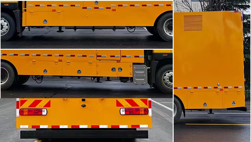 | 整车说明: | 车厢内安装发电机组、电控装置及输电线路用于抢险救灾以及重大政治会议,赛事活动等的应急电力支援.车厢顶部封闭不可开启;选用5600mm轴距,侧防护与厢体为整体裙边结构;后防护材料为Q235B,焊接连接,后防护装置的断面尺寸为140×65mm,离地高度为425mm.ABS型号:1.CM4XL;2.VIE ABS-II;ABS生产企业:1.长春科密汽车制动有限公司,2.浙江万安科技股份有限公司.选装限速装置,限速装置限速(km/h):89km/h. | ||