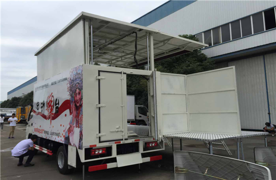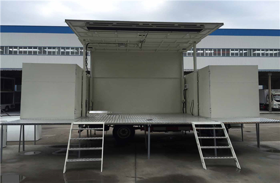 | 整车说明: | 安装具有卫星定位功能的行驶记录仪。ABS型号为APG3550500A, 生产企业为浙江亚太机电股份有限公司.ABS型号为ABS-E,生产企业为威伯科汽车控制系统(中国)有限公司。侧,后防护装置材料:Q235A碳钢,焊接,后防护断面尺寸(宽×高)(mm)50×100,离地高430mm。车辆尾部选装无拐臂。货厢顶部封闭,不可开启。专用装置:折叠式平台,支腿,顶棚,作业时两侧侧板展开随顶部一起举升,侧板可向下展开平铺形成舞台地板,内藏折叠式舞台板。 | ||