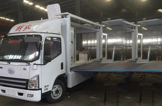 | 产品名称: | 宣传车 | 外型尺寸(mm): | 5995×2030×2980 |