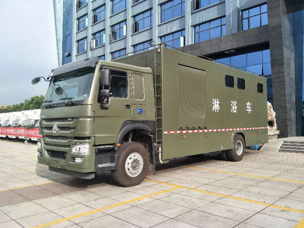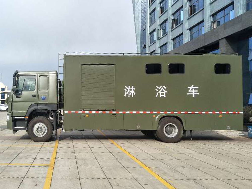 | 整车说明: | 1.采用轴距:5600mm,5800mm;总长(mm)=前悬+轴距+后悬(mm)对应关系为:10730=1430+5800+3500,10330=1430+5600+3300.2.该车主要用于野外淋浴保障功能,专用装置:冷热水供给系统、淋浴装置.3.后防护采用Q235,焊接连接,后防护截面尺寸:120mm×100mm,下边缘离地高490mm,裙边结构代替侧防护.4.ABS系统控制器生产企业/型号为威伯科(上海)管理有限公司/4460046300;选装EBS,EBS系统控制器生产企业/型号为威伯科(上海)管理有限公司/EBS3.5.选装外观和内饰.选装驾驶室; 选装新款外形样式; 选装爬梯外观样式. | ||