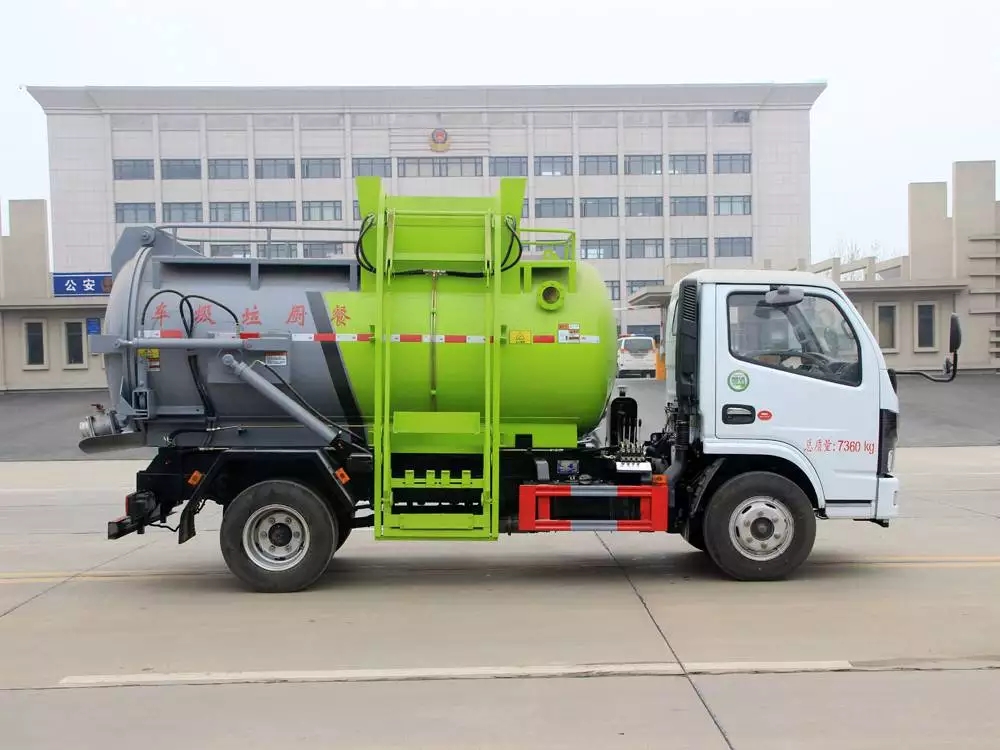 整车说明: 1、仅选用3308mm轴距底盘改装。2、该车可选装内部推板、加热装置,不影响整车外观,但会引起整车重量变化,该车可选装A:内部推板装置B:内部加热装置C:真空吸污装置,当无选装装置时:整备质量/额定载质量对应关系为(kg):4370/2860;当选装A、B、C装置中任意一项配置时,整备质量/额定载质量对应关系为(kg):4800/2430;当选装A、B、C装置中任意两项配置组合时,整备质量/额定载质量对应关系为(kg):5100/2130;当A、B、C装置全部选装时,整备质量/额定载质量对应关系为(kg):5250/1980。3、防护材料:Q235B碳钢,连接方式:左右侧面及后下部防护均采用焊接连接,后下部防护断面尺寸(mm):120×50,后下部防护离地高度(mm):380。4、ABS型号/厂家:ABS/ASR-12V-4S/4M/襄阳东风隆诚机械有限责任公司。5、专用装置:侧装垃圾桶提升装置,主要用于餐厨垃圾收集及转运。6、随底盘选装驾驶室,选装底盘附件安装位置。该车可选装爬梯,可选装带真空吸污装置上装外观,提升机外观,视窗后置。