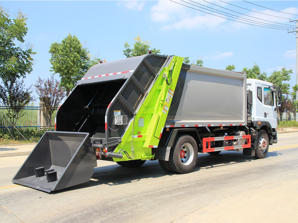 | 整车说明: | 1、该车选用3950和4500两种轴距底盘。2、随底盘选装驾驶室。3、该车有五种可选翻转样式,A:三角斗装置,B:挂桶装置,C:摆臂装置,D:大落地斗装置,E:无后翻转装置。当选择ABCD时,该车整车长(mm)/轴距(mm)/后悬(mm)/整备质量(Kg)的对应关系为:7690/3950/2510/8900,8240/4500/2510/9700;当选择E时,该车整车长(mm)/轴距(mm)/后悬(mm)的对应关系为:7450/3950/2270,8000/4500/2270。4、防护材料:Q235B碳钢,左右侧面防护连接方式为螺栓连接;后部防护由专用装置代替,离地高度480mm。5、ABS系统生产厂家,型号 :焦作博瑞克控制技术有限公司,J ABS.安装具有卫星定位功能的行驶记录仪。6、仅采用发动机与油耗值对应关系为(L/100km):YC4EG170-50/26.0,YC4EG185-50/26.3,ISB180 50/27.8,ISD160 50/26.3。7、专用装置:箱体。主要用于城镇环卫垃圾的收集与运输。8、该车可选装三缸大落地斗装置和摆臂装置外观,以及两缸摆臂装置、三角斗装置和大落地斗装置外观。随底盘选装驾驶室。 | ||