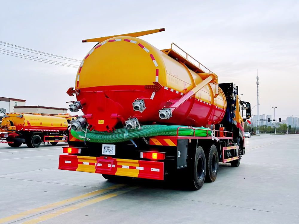 | 整车说明: | 该车装有取力器,真空泵,用于吸污;装有高压水泵,高压水管用于清洗;罐体尺寸为(直线段长×直径)(mm):5400×2100,罐体前半段为清水罐,清水罐(直线段长×直径)(mm):2400×2100,罐体有效容积:7.37立方米;罐体后半段为污水罐,污水罐(直线段长×直径)(mm):3000×2100,罐体有效容积:9.67立方米,吸污罐和水罐为两个独立容器,不能同时满载;前悬/轴距/后悬对应为:1500/5700+1350/1600,1480(1500)/5350+1350/1970(1950),1480(1500)/4350+1350/2970(2950);1500/4600+1350/2700;该车随底盘选装驾驶室,防护材料:Q235A碳钢,连接方式:左右侧面及后下部防护均采用焊接连接,后部防护断面尺寸(mm):120×50,后部防护离地高度(mm):450,ABS型号/生产厂家:3631010-C2000/东科克诺尔商用车制动系统(十堰)有限公司,ABS 8/东科克诺尔商用车制动系统(十堰)有限公司,4460046450/威伯科汽车控制系统(中国)有限公司。 | ||