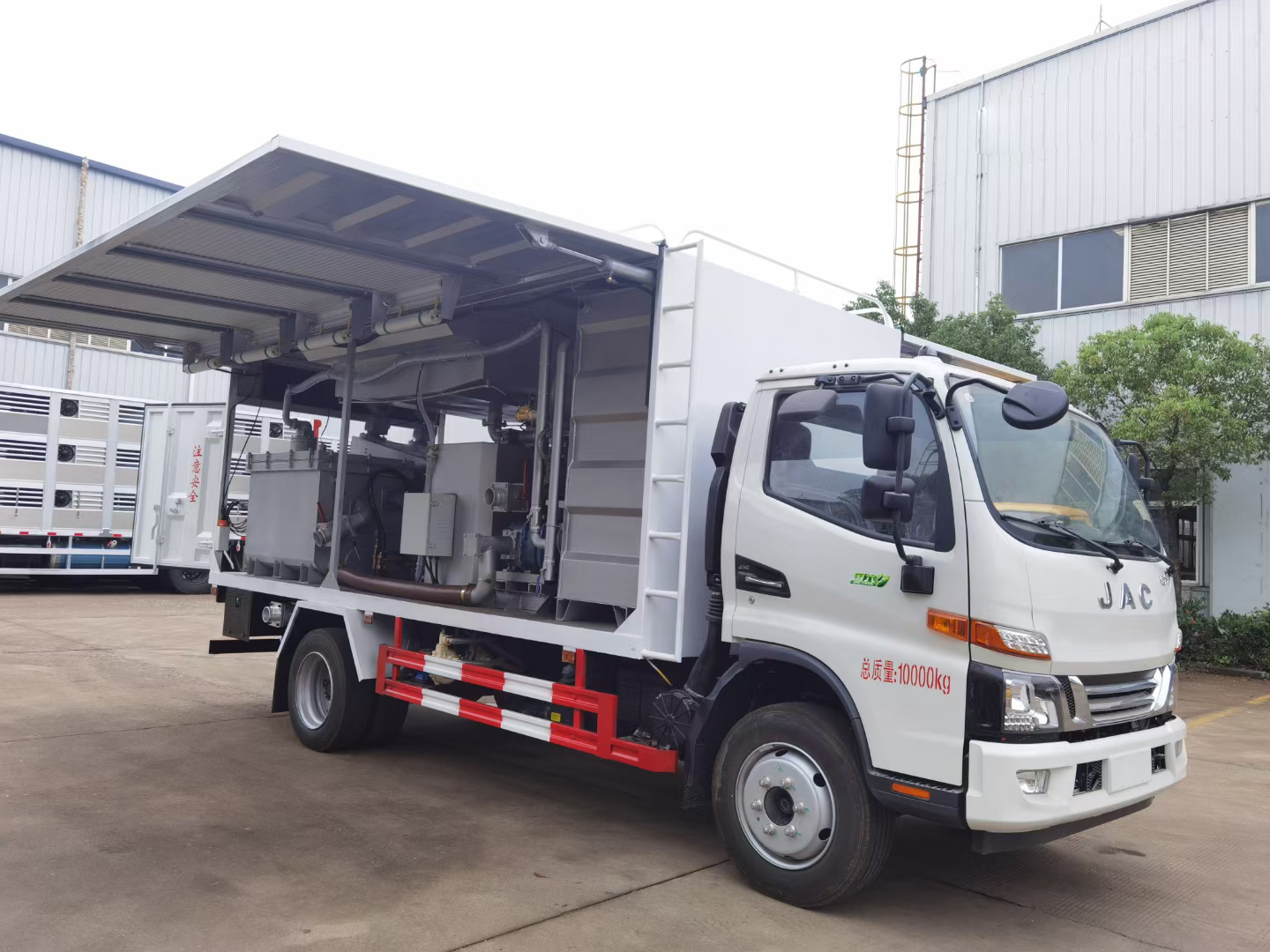 | 整车说明: | 选装厢体结构。侧防护采用冷弯型钢/Q235-B,螺栓连接;后防护采用冷弯型钢/Q235-B,焊接连接,截面高度尺寸120mm,截面宽度尺寸50mm,下边缘离地高度450mm。ABS系统控制器型号/生产厂家:VIE ABS-Ⅱ/浙江万安科技股份有限公司。该车主要用于下水道污水的固态废物分离工作,主要专用装置为设备箱、叠螺机、循环水箱。该车型可选装ETC车载装置。车长/后悬一一对应。该车型可选装ETC车载装置。 | ||