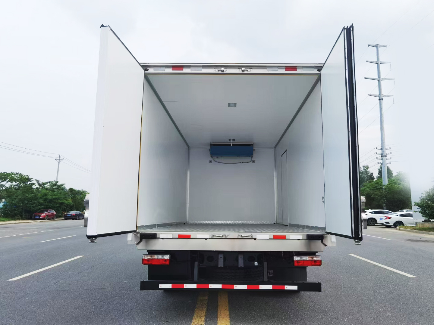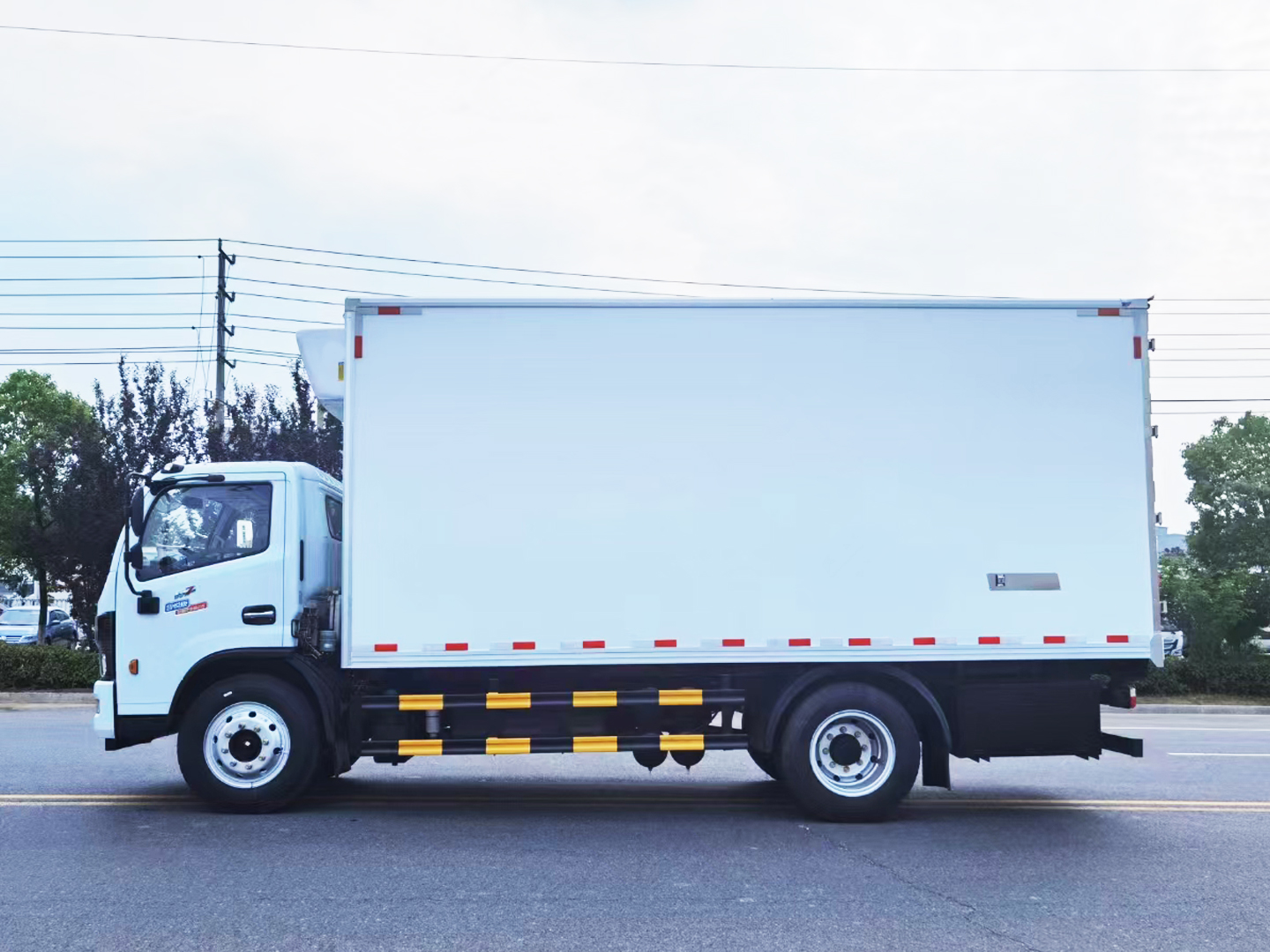 | 整车说明: | 车厢顶部封闭不可开启,随底盘选装前面罩.前部组合灯具,前保险杠,选装后视镜,选装一排半驾驶室.选装导流罩和侧开门.侧门可为单开门,双开门或不开门及内置冷藏机组.选装保温复合板.门锁选装2杆2锁,4杆4锁.随底盘选装燃油箱,电瓶,尿素罐,储气筒左右安装位置.可选装功率相当的其它型号的制冷机组,选装液压尾板,收起状态的水平长度为290mm,液压尾板质量为450kg.后防护上安装的倒车雷达为选装件,侧面及后下部防护装置材料为Q235,与车架采用螺栓连接.后下部防护装置断面尺寸(mm):120×60,离地高度:450mm,选装液压尾板时,后防护为三段式,与车架焊接.装配D4.0NS6B195,YCS04190-68,CY4SK161发动机时对应油耗均为23.6(L/100km).ABS厂家及型号:襄阳东风隆诚机械有限责任公司/ABS/ASR-24V-4S/4M.外形尺寸长-轴距-前后悬的对应关系:6995-3800-1180/2015,7360-4100-1180/2080,7420-4100-1180/2140,7995-4400-1180/2415,安装具有卫星定位功能的行驶记录仪 | ||